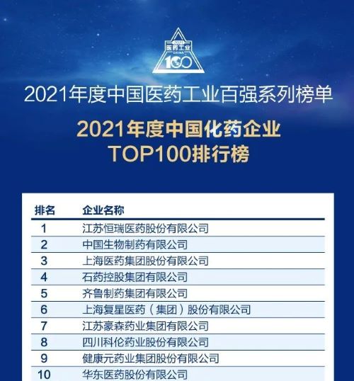 此前,AG官网医药已经连续多年入选“中国化药企业TOP100排行榜”,自2018年起名列首位,今年再度蝉联榜首。