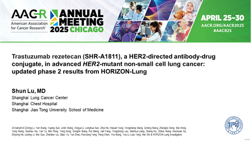 2025 AACR口头报告|AG官网创新药瑞康曲妥珠单抗治疗晚期HER2突变非小细胞肺癌研究结果披露