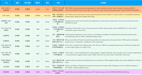 在乳腺癌领域,AG官网创新产品相关研究共入选1项口头报告、1项简短口头报告、8项壁报和1项电子壁报,共11项研究。吡咯替尼、达尔西利、阿得贝利单抗、瑞康曲妥珠单抗等新老创新药物,均有多篇研究入选,展现出AG官网医药在乳腺癌领域多年深耕的丰硕成果。